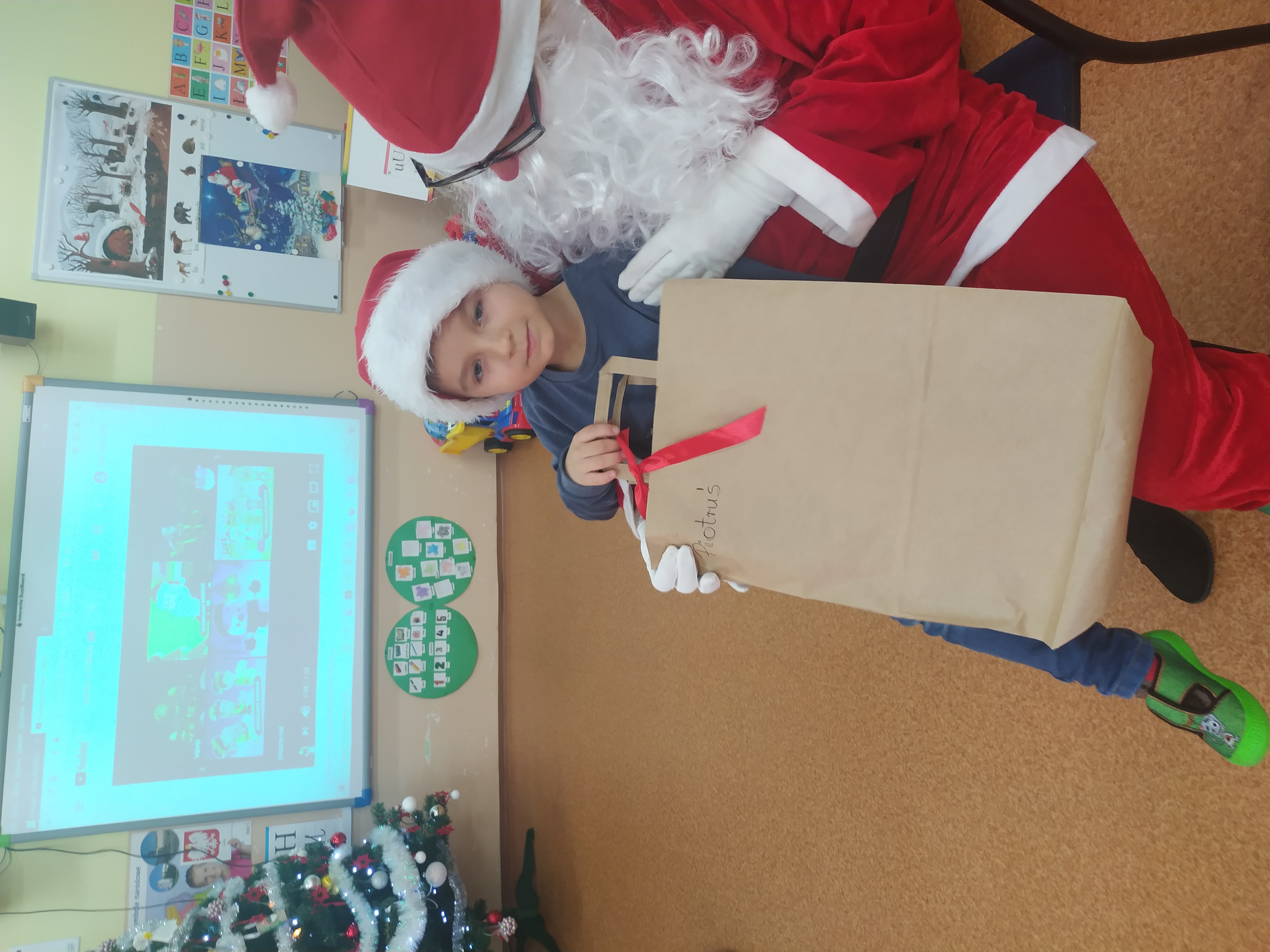 Dziś nasze przedszkole odwiedził bardzo miły i długo oczekiwany gość. Miał czerwony strój, długą, białą brodę, dźwigał na plecach bardzo ciężki worek, a w nim prezenty. To nie mógł być nikt inny tylko MIKOŁAJ. Pomimo braku białego puchu, jak co roku przybył na czas. Spotkanie przebiegało w bardzo radosnej i przyjaznej atmosferze. Na twarzach dzieci malowała się wielka radość i przejęcie, a także nadzieja na kolejne spotkanie. Święty Mikołaju bardzo dziękujemy za odwiedziny i do zobaczenia za rok!