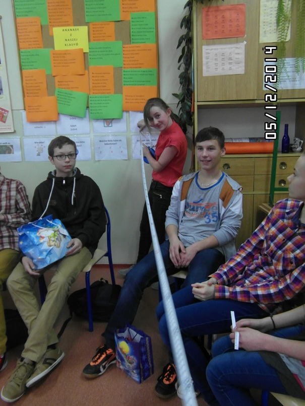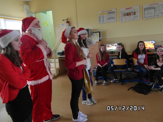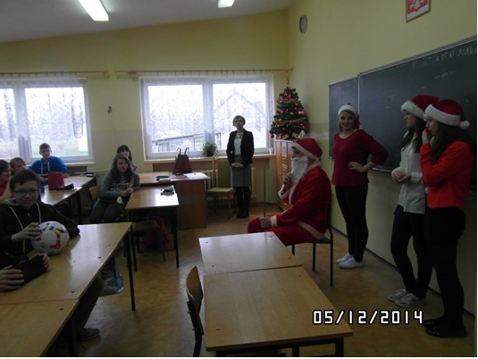 5 grudnia 2014 r. odwiedził nas w szkole św. Mikołaj. Przez cały dzień chodził po klasach. Zadawał dwa pytania. Pierwsze to czy byliśmy grzeczni, a drugie czy lubimy Mikołaja. Wszyscy oczywiście odpowiadali: ,,tak".