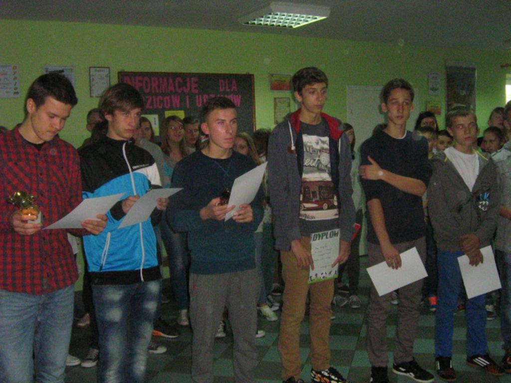 7 listopada 2014r. w Gimnazjum w Czarnożyłach odbyła się uroczystość z okazji 96. rocznicy Odzyskania Niepodległości przez Polskę. Zostali na nią zaproszeni kombatanci z gminy Czarnożyły, którzy w 2011r. wystąpili z wnioskiem o odznaczenie naszego gimnazjum Złotym Medalem Opiekuna Miejsc Pamięci Narodowej. Swoją obecnością zaszczycili nas: p. Czesław Skupiński, prezes gminny ZKRP i BWP, p. Mieczysław Bak i p. Tadeusz Patyk. Młodzież z klas III B, II A i II B przygotowała sugestywny spektakl poetycko - muzyczny wzbogacony prezentacją multimedialną. Główną ideą przedstawienia było zaprezentowanie bohaterstwa i poświęcenia Polaków walczących o wolną i niepodległą Ojczyznę.